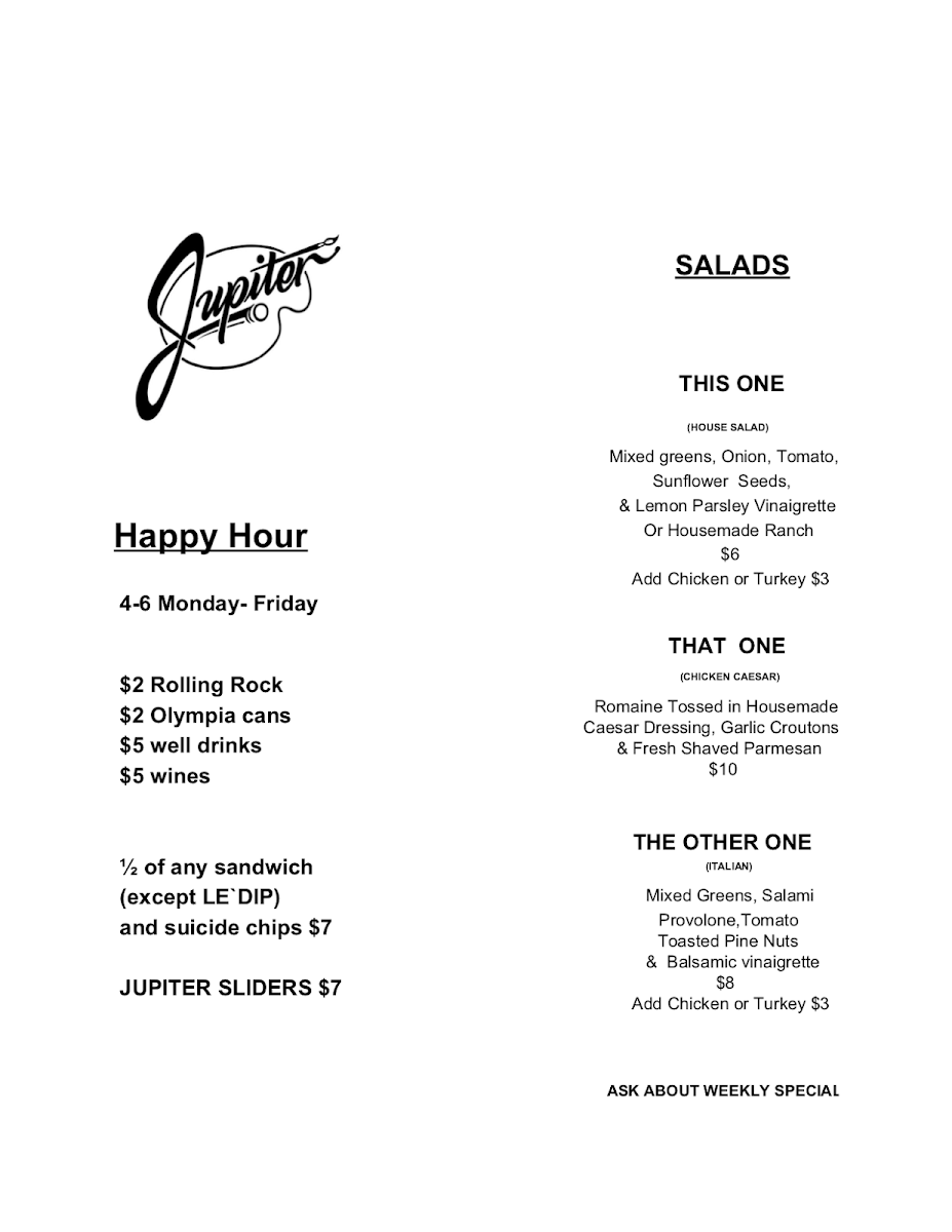 Welcome to Jupiter Bar, a culinary gem located in the heart of Seattle. This vibrant establishment offers a mouthwatering menu that celebrates bold flavors and diverse influences. Dive into their signature TACOS like the scrumptious HUSHWE, featuring Lebanese-style browned butter beef, or the tantalizing SPICY CAULIFLOWER, a vegan delight with broiled harissa cauliflower paired with chickpea mash.